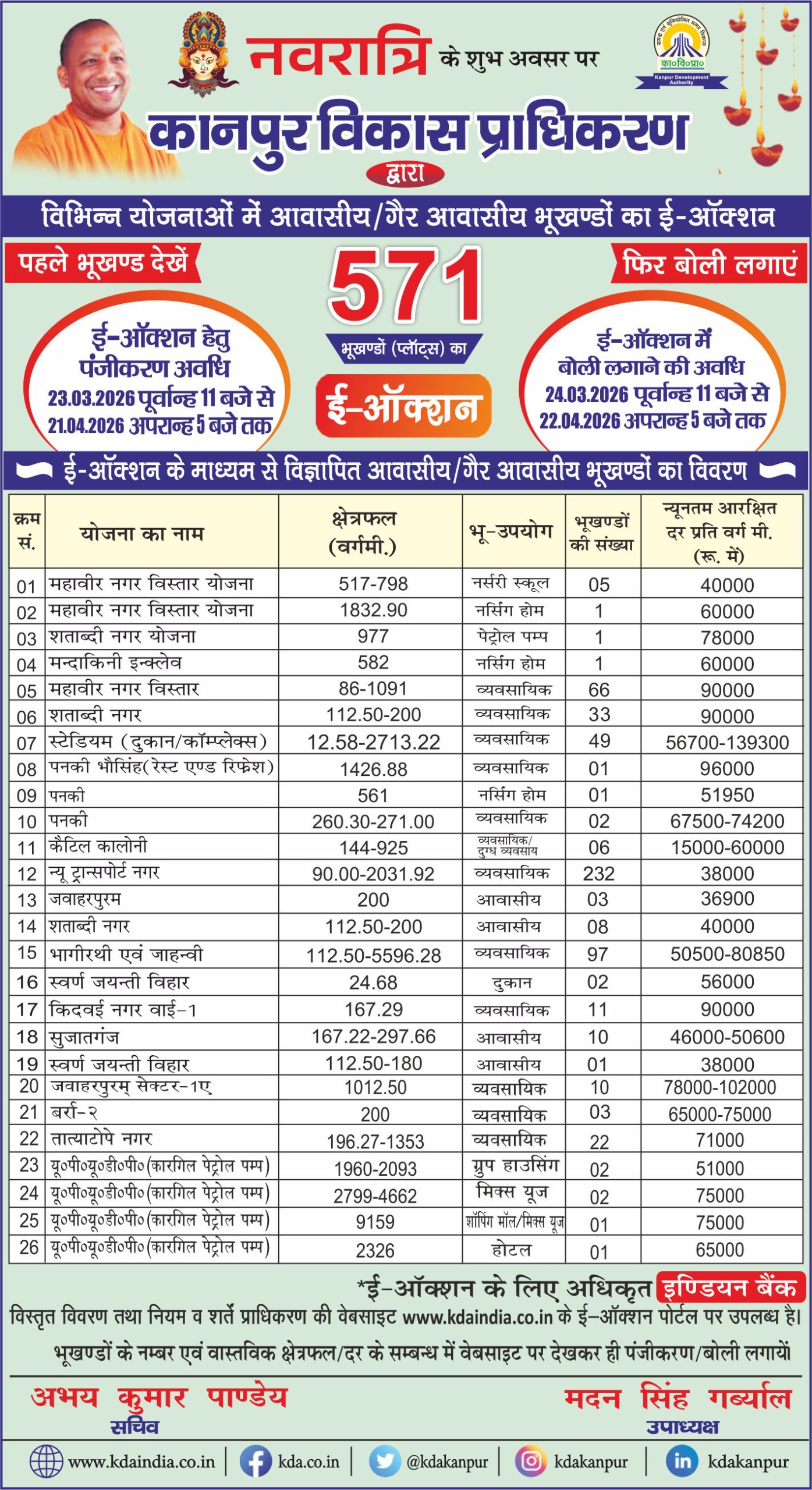Kanpur Development Authority Presents Mega E-Auction of Following Residential/Commercial Plots